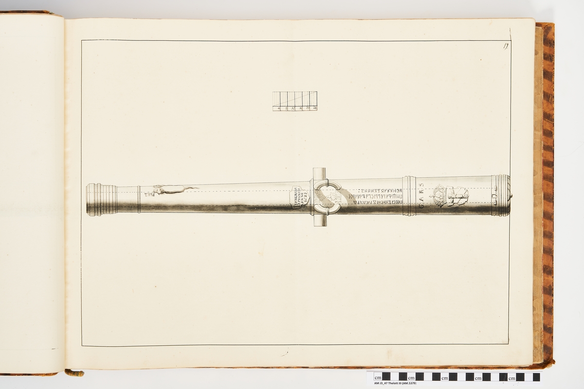 Avbildning föreställande rysk trofée som av kung Gustaf Adolf är tagna med Ivangrada år 1612, med bokstäverna GARS. Ingår i volym med avbildade äldre svenska eldrör förvarade på fästningar samt eldrör erövrade åren 1598-1679.
