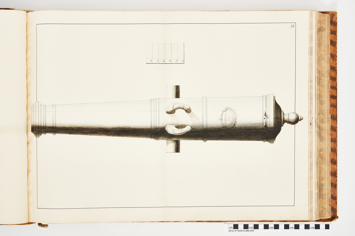 Titel: Avbildning föreställande romersk kejserlig trofé med kejsar Ferdinand II:s vapen. Ingår i volym med avbildade äldre svenska eldrör förvarade på fästningar samt eldrör erövrade åren 1598-1679.