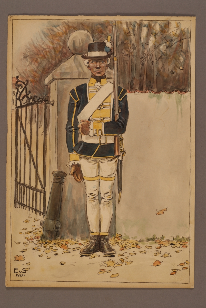 Plansch med uniform för Kronobergs regemente, ritad av Einar von Strokirch.