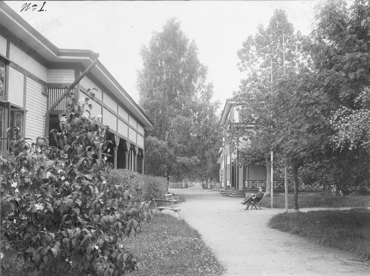 Officer sitter i stol i grönskan på Hälsinge regementes, I 14, område.