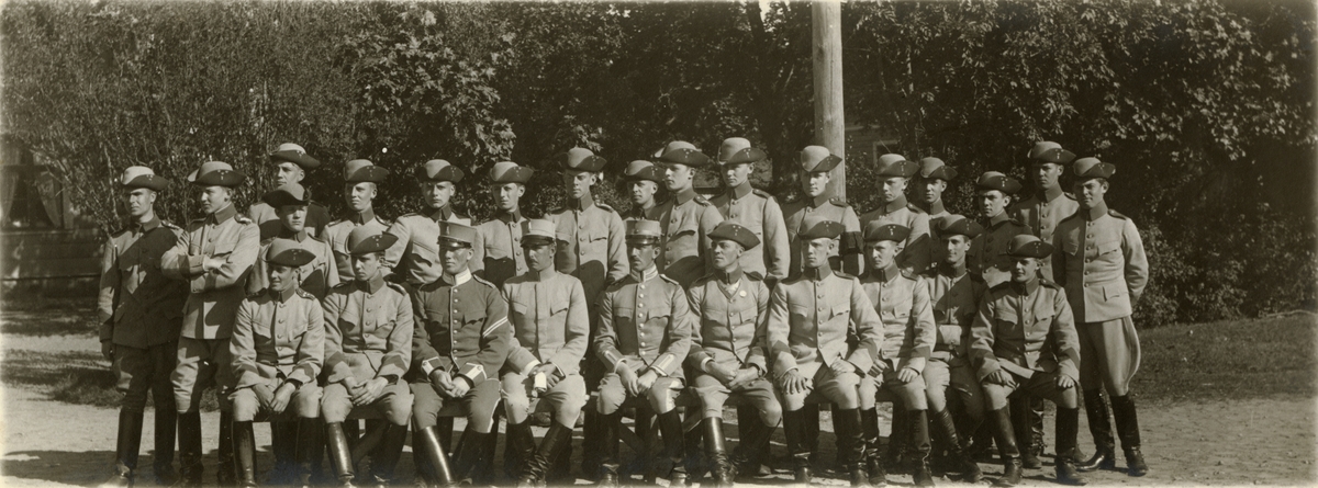 Titel: Gruppbild med soldater från Kavalleriskolan.