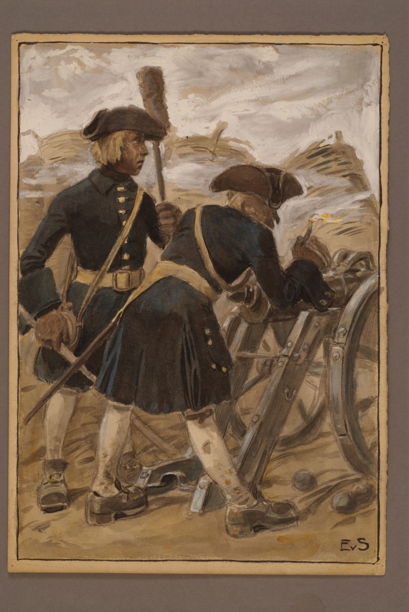Plansch med uniform för artilleri, ritad av Einar von Strokirch.