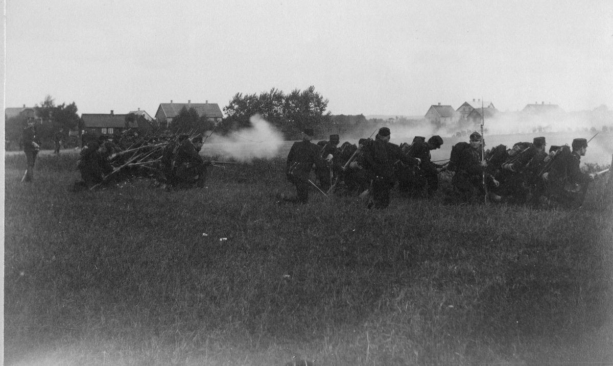 Södra Skånska infanteriregementet I 25 på skyttelinje under eldgivning i Munka Ljungby,