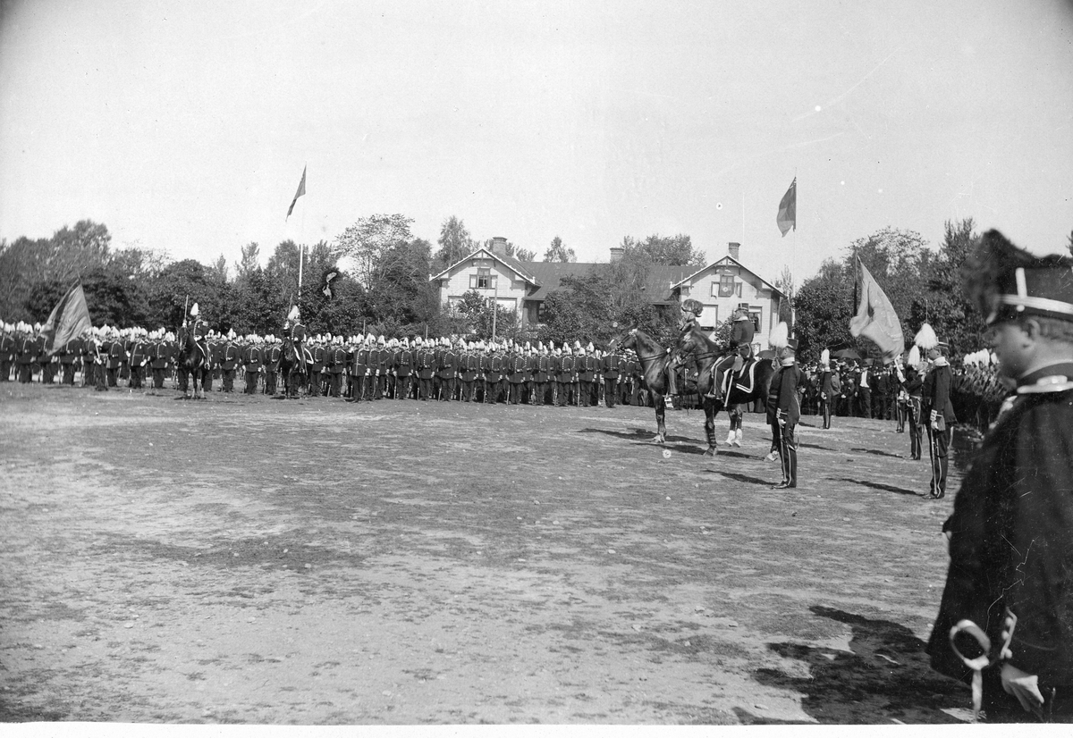 Överste Johan Lilliehööks avsked från Livregementet till fot (I 3) vid Sanna hed den 29/8 1897. Fotografiet visar Lilliehöök framför regementet i öppen fyrkant.