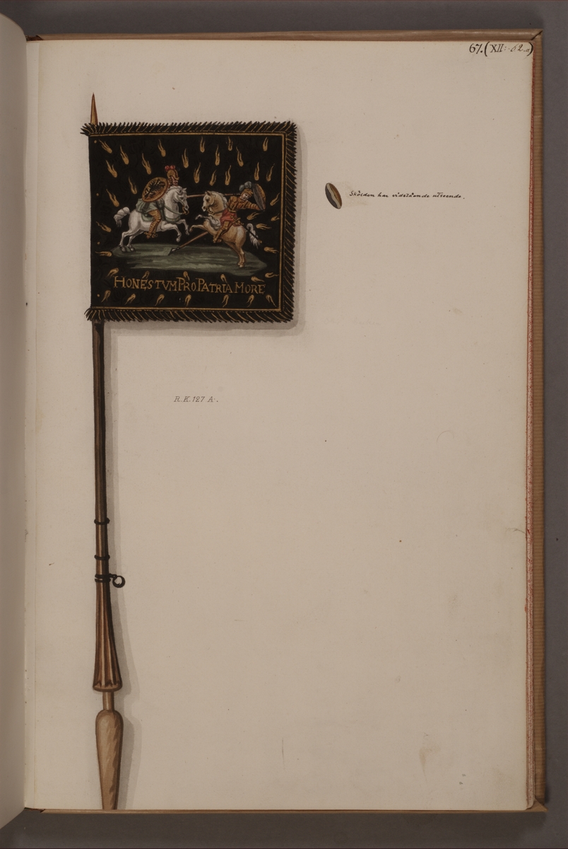 Avbildning föreställande fälttecken taget som trofé av svenska armén. Det avbildade standaret finns bevarat i Armémuseums samling, för mer information, se relaterade objekt.