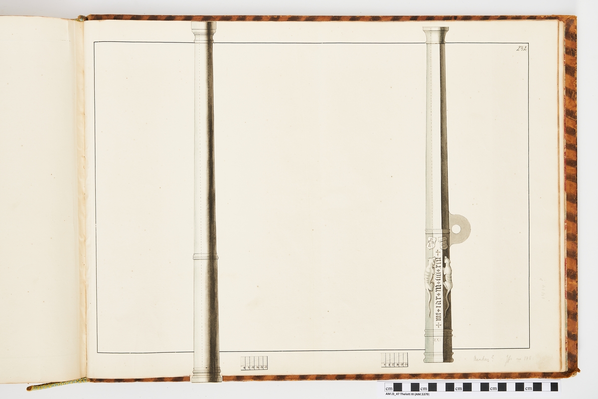 Avbildning föreställande troféer av okänd nationalitet. Ingår i volym med avbildade äldre svenska eldrör förvarade på fästningar samt eldrör erövrade åren 1598-1679.
