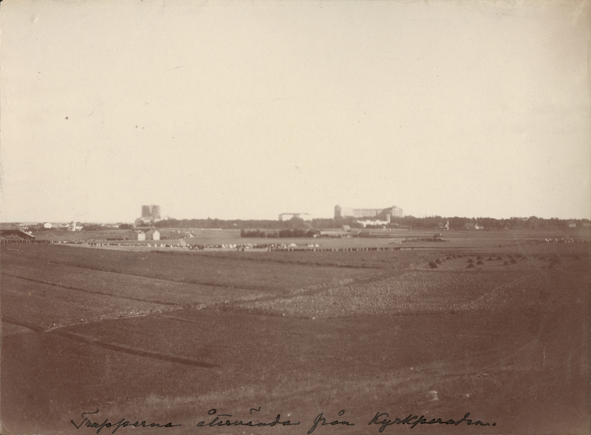 Titel: Text i fotoalbum: "Trupperna återvänder från kyrkparaden".