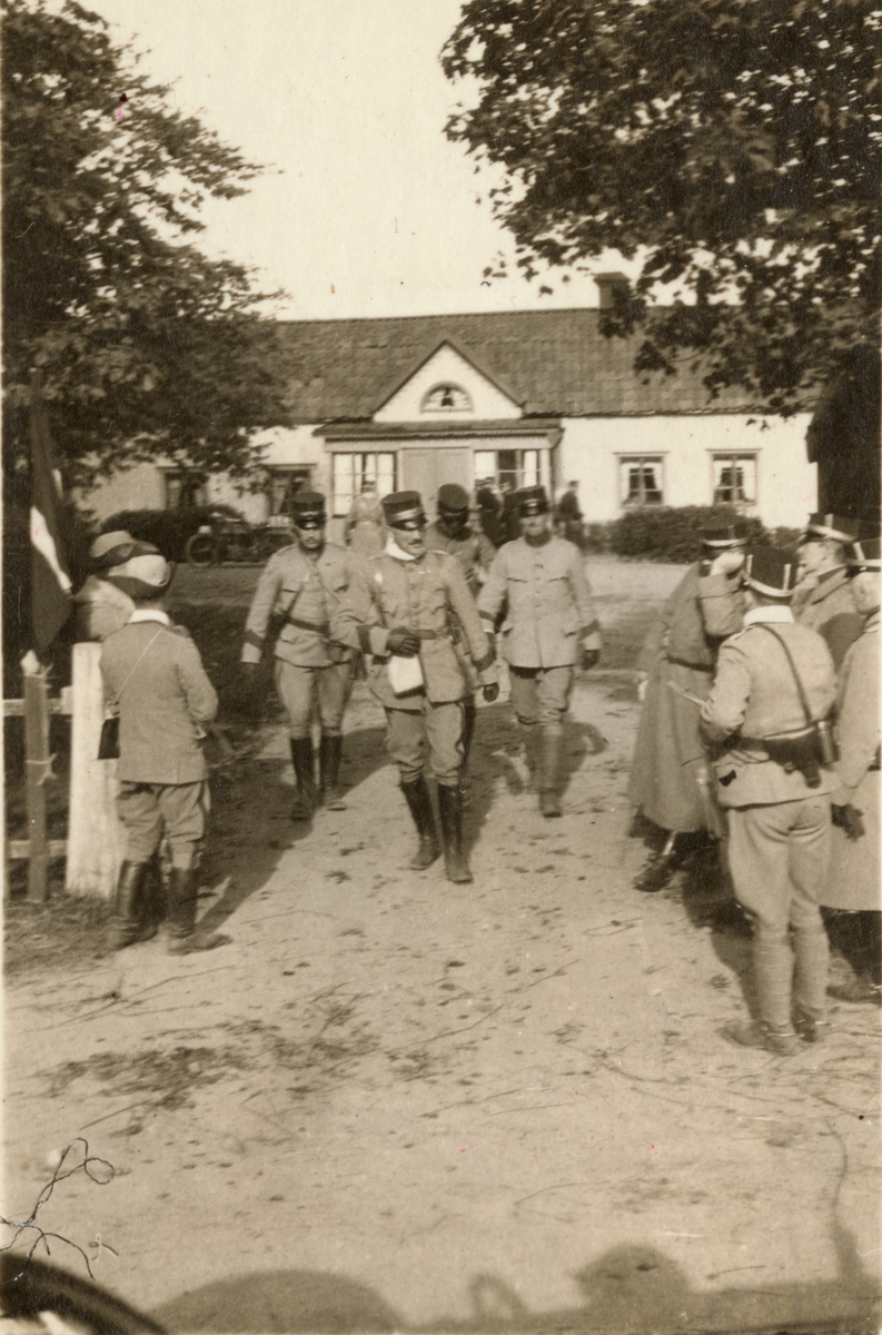 Titel: Samling vid en gård. Fälttjänstövning i Uppland.