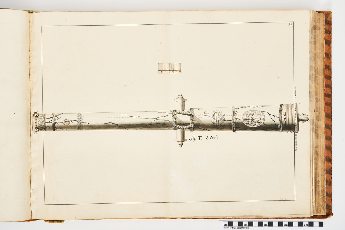 Avbildning föreställande polsk trofé med Nicolaus Christopher Radzevills sigill. Ingår i volym med avbildade äldre svenska eldrör förvarade på fästningar samt eldrör erövrade åren 1598-1679.