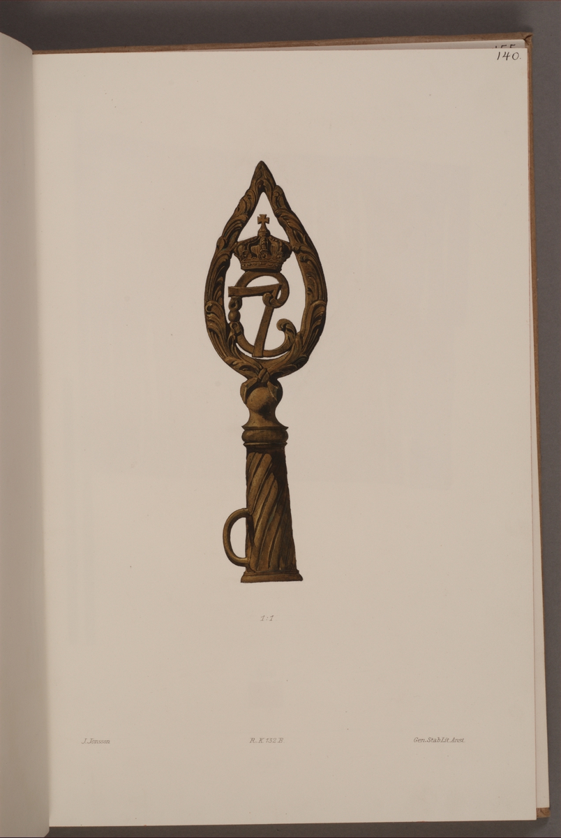 Avbildning i gouache föreställande fanspets tagen som trofé av svenska armén. Den avbildade fanspetsen finns bevarat i Armémuseums samling, för mer information, se relaterade objekt.