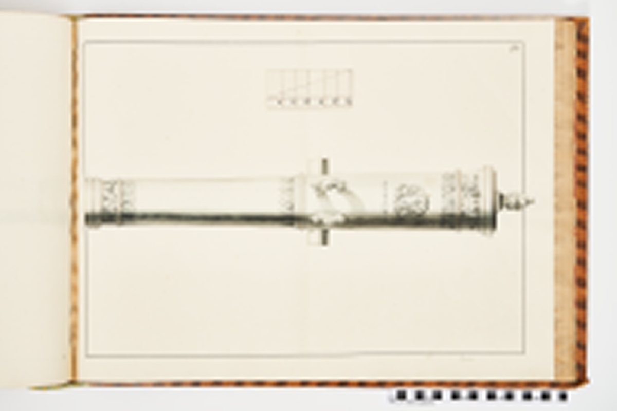 Avbildning föreställande brandenburgsk trofé. Ingår i volym med avbildade äldre svenska eldrör förvarade på fästningar samt eldrör erövrade åren 1598-1679.