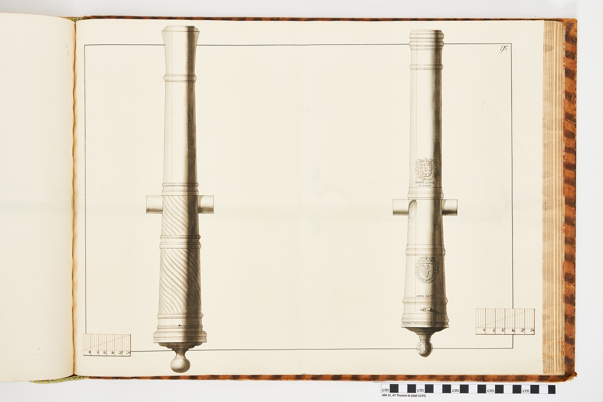 Avbildning föreställande spanska troféer tagna vid Mainz 1632. Ingår i volym med avbildade äldre svenska eldrör förvarade på fästningar samt eldrör erövrade åren 1598-1679.