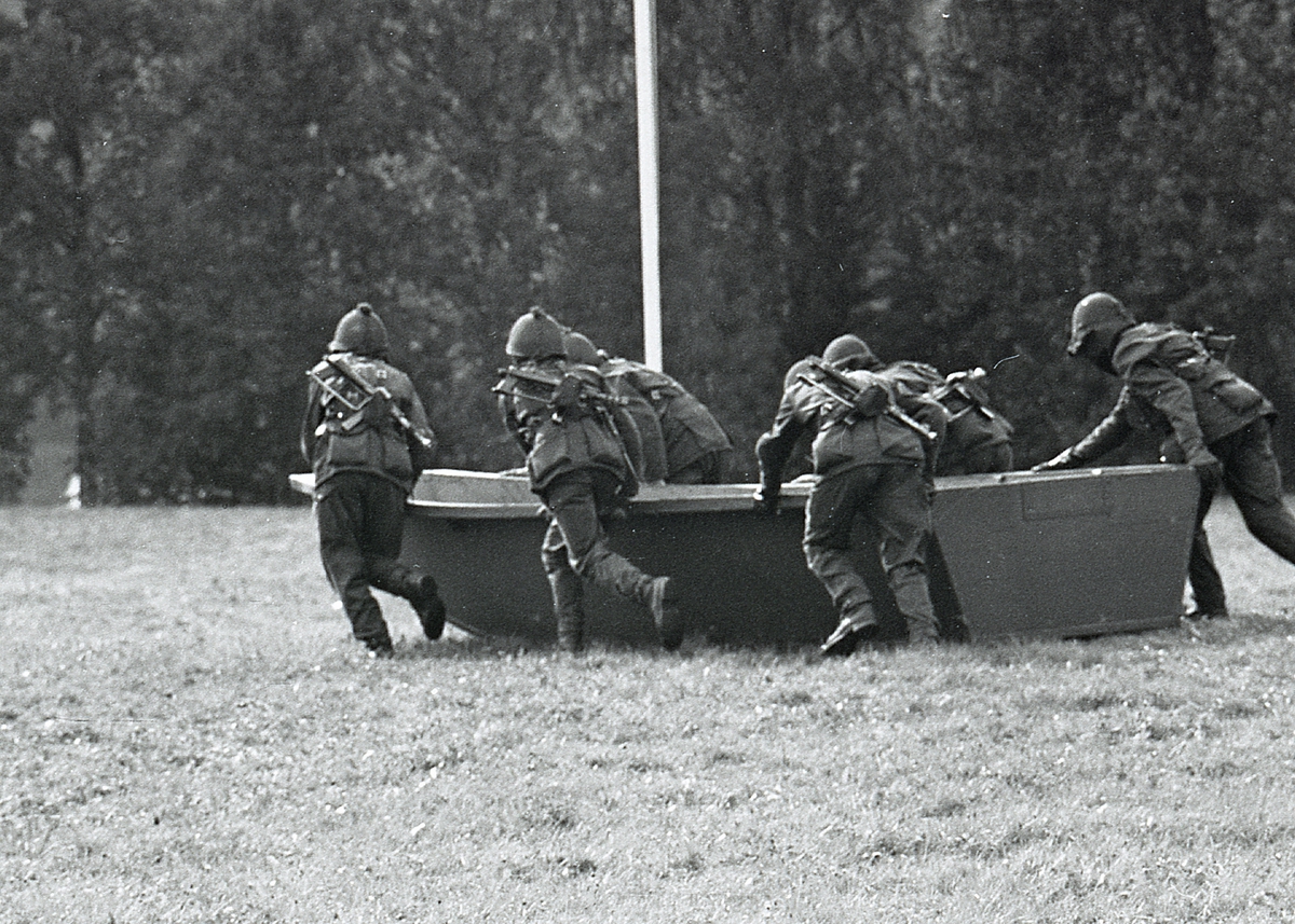 Båt förflyttas vid militärövning på I 21 Västernorrlands Regemente, Sollefteå.