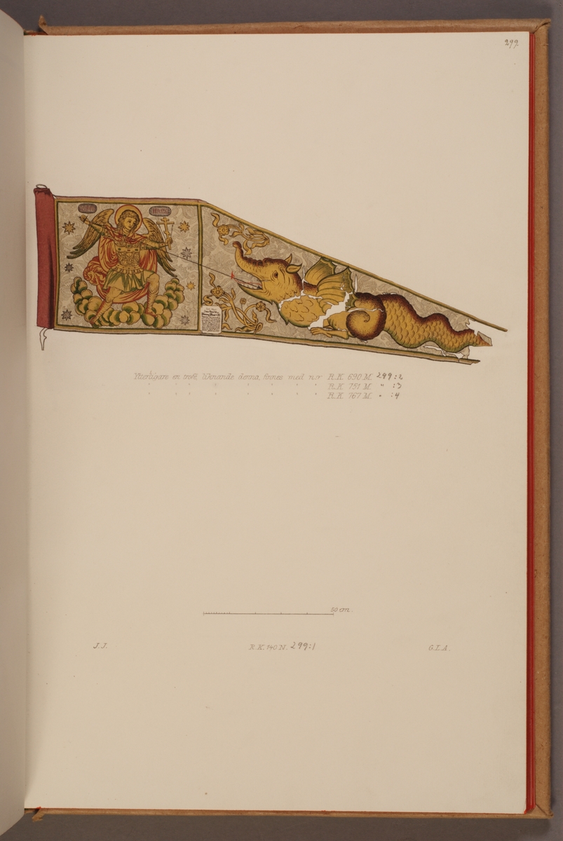 Avbildning i gouache föreställande fälttecken taget som trofé av svenska armén. Den avbildade vimpeln finns bevarad i Armémuseums samling, för mer information, se relaterade objekt.