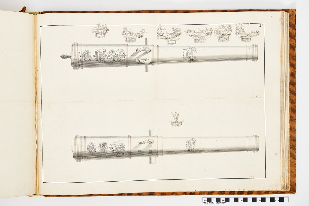 Avbildning föreställande eldrör tagna som troféer av den svenska armén i slaget vid Kliszów den 9 juli 1702. Ingår i volym med avbildade kanontroféer tagna åren 1700-1702.