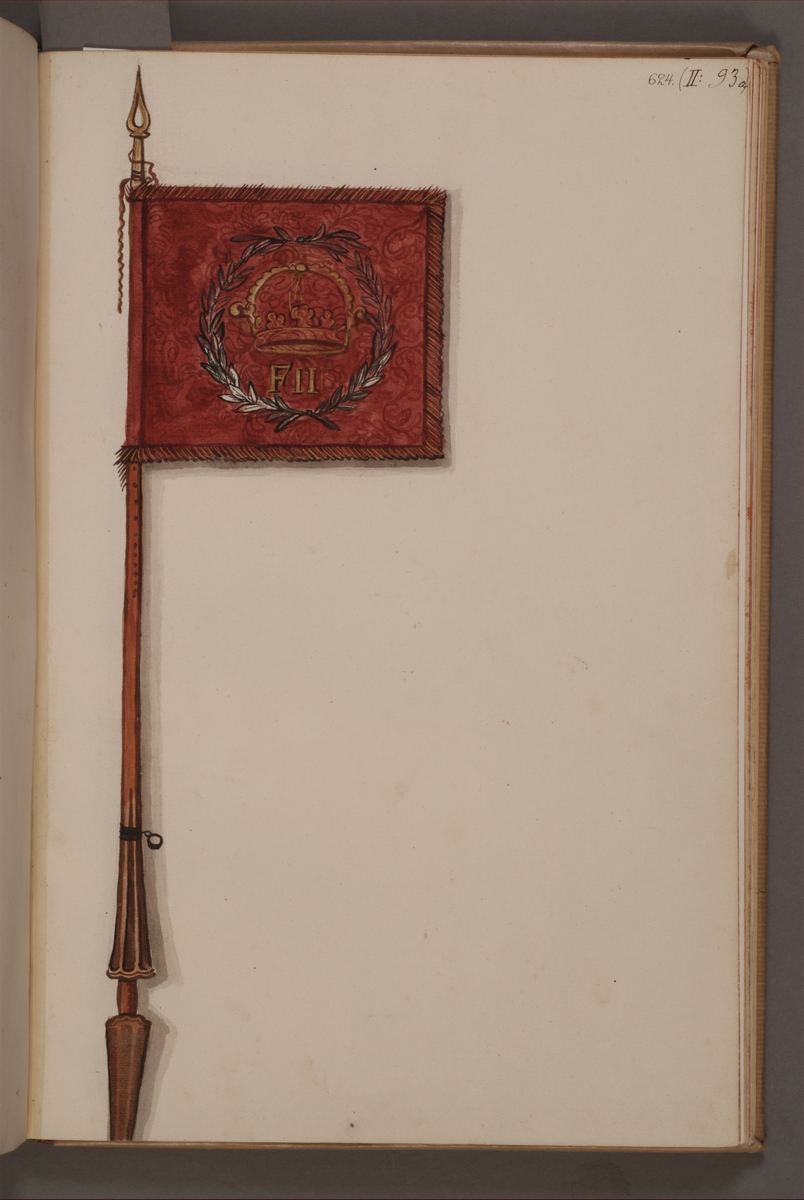 Avbildning i gouache föreställande fälttecken taget som trofé av svenska armén. Det avbildade standaret finns delvis bevarat i Armémuseums samling, för mer information, se relaterade objekt.