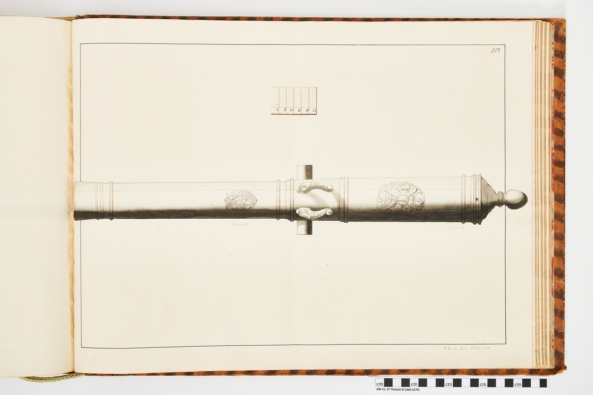 Titel: Avbildning föreställande spansk trofé tagen vid Mainz 1632. Ingår i volym med avbildade äldre svenska eldrör förvarade på fästningar samt eldrör erövrade åren 1598-1679.