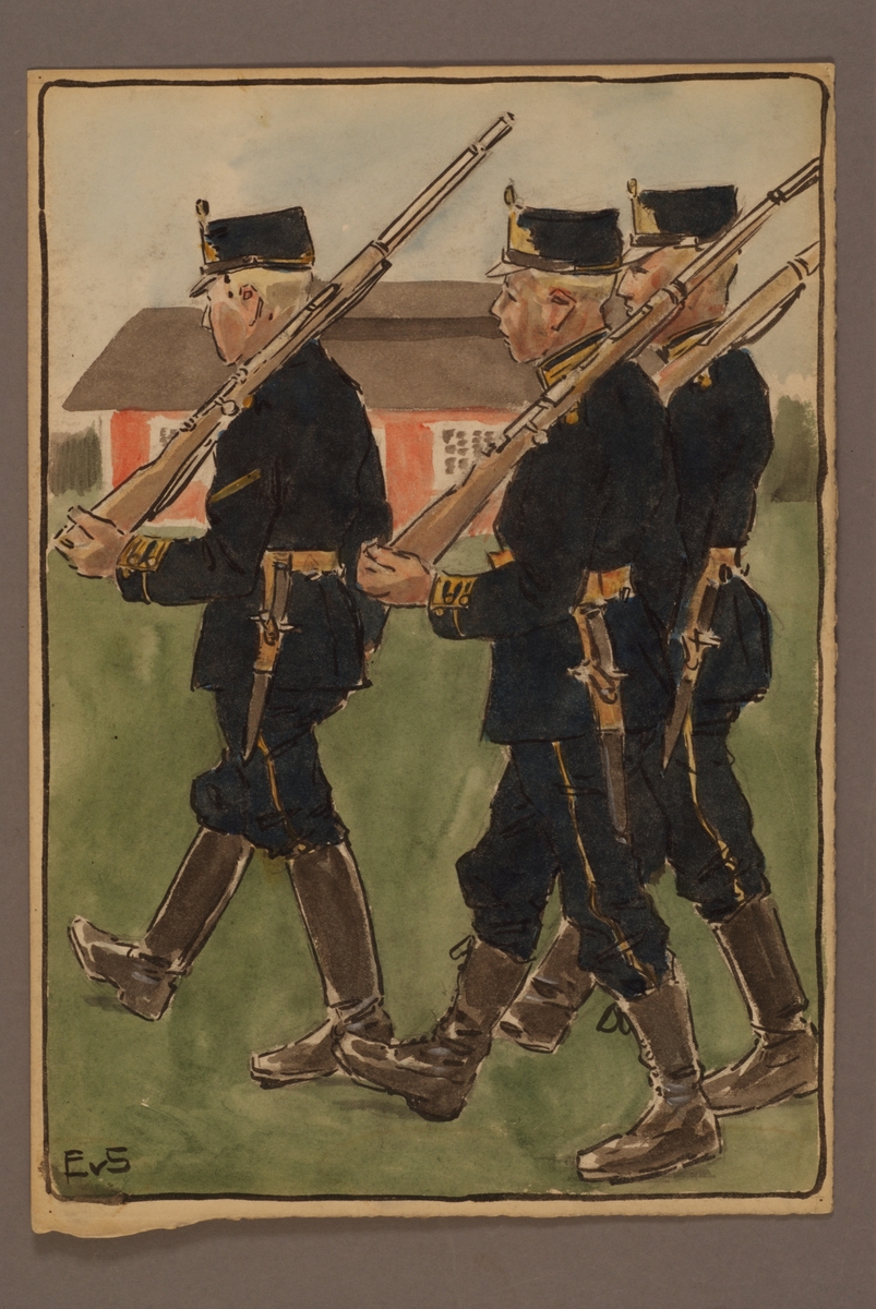 Plansch med uniform för Smålands grenadjärkår, ritad av Einar von Strokirch.