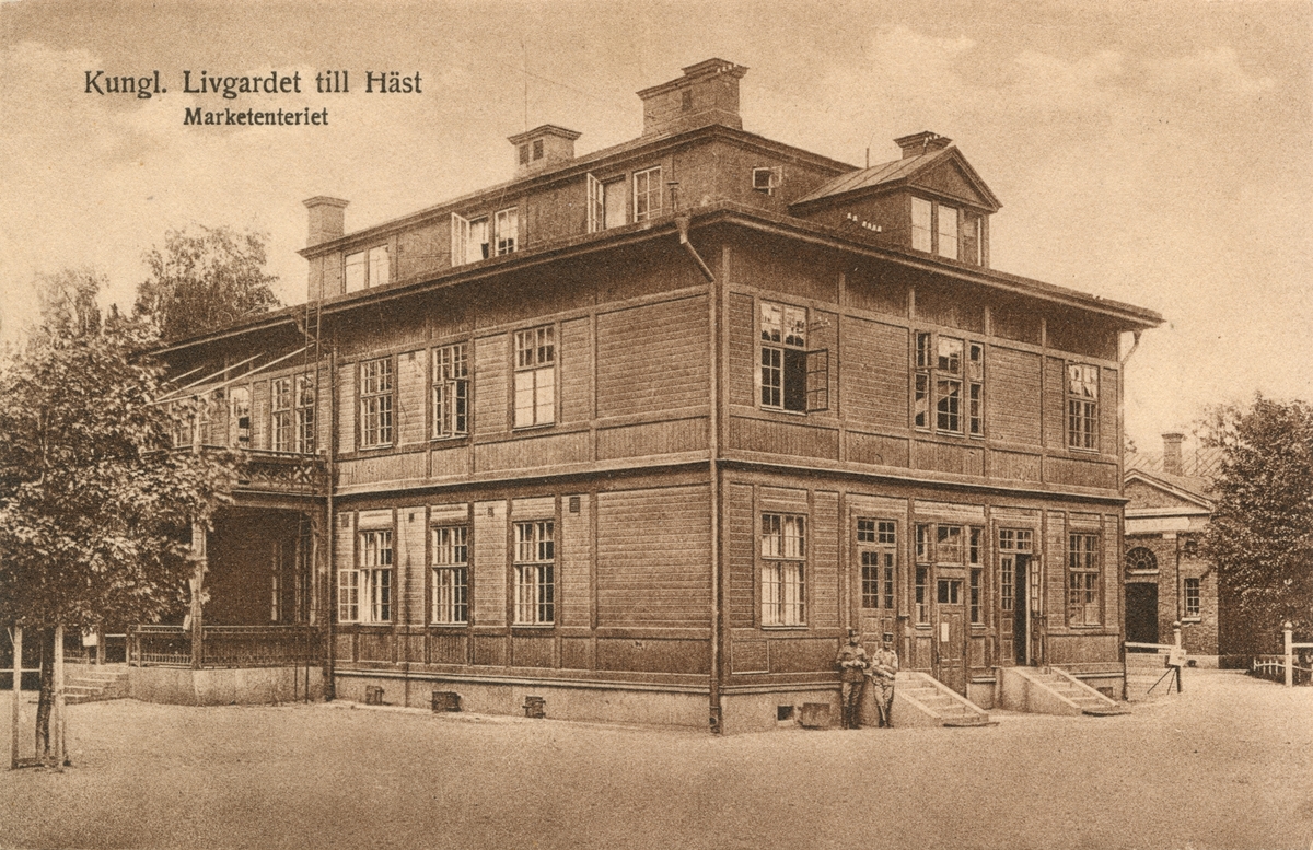Exteriörbild på marketenteriet, Livgardet till häst.