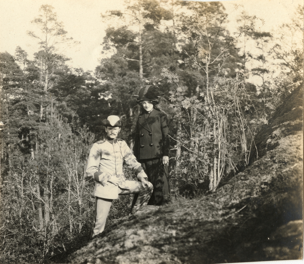 Titel: Foto på en man och en kvinna stående på bergsknalle.