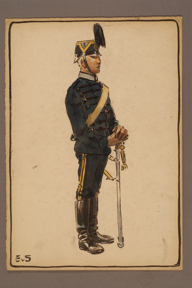 Plansch med uniform för Gotlands artilleriregemente, ritad av Einar von Strokirch.