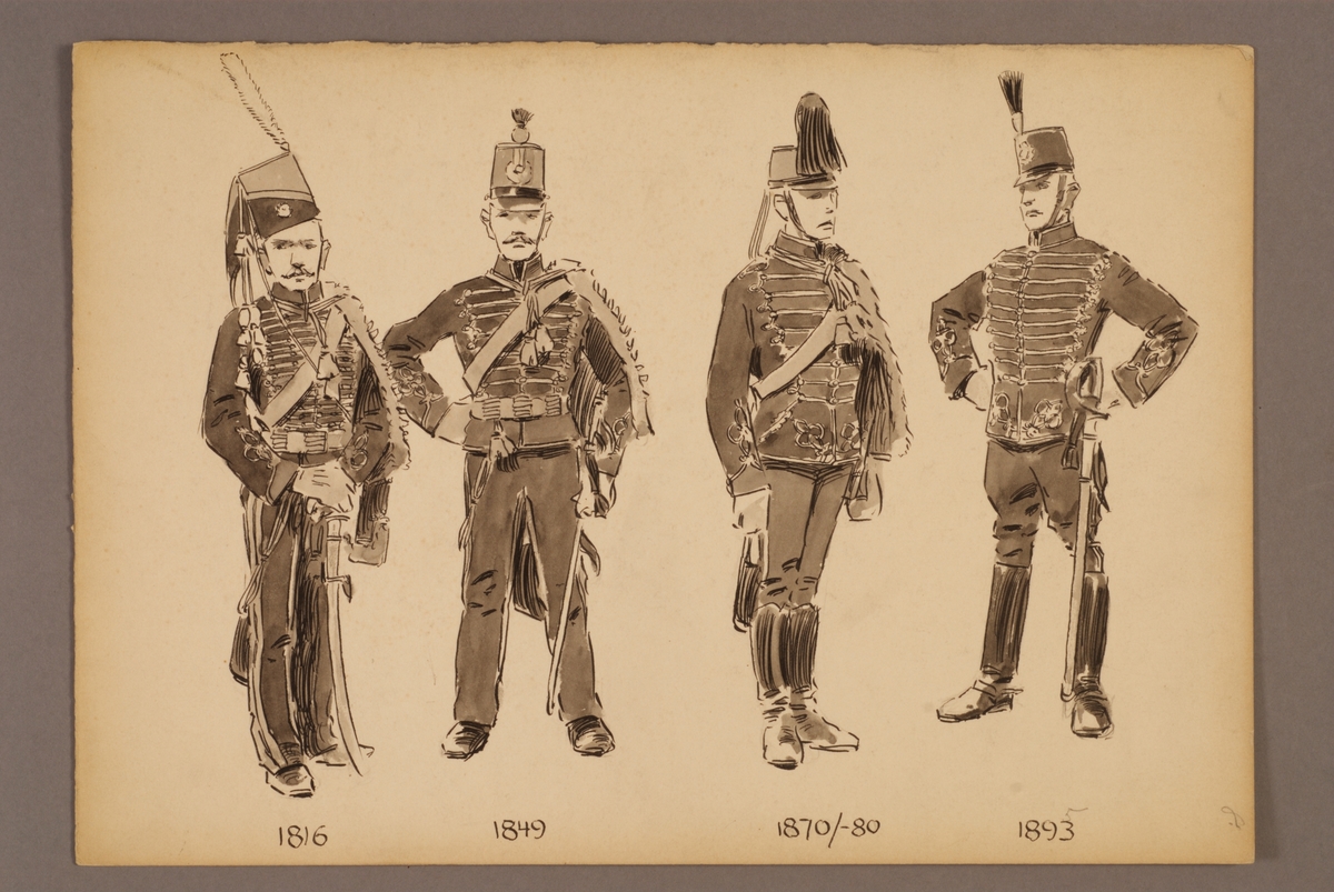Plansch med uniform för Skånska husarregemente, ritad av Einar von Strokirch.