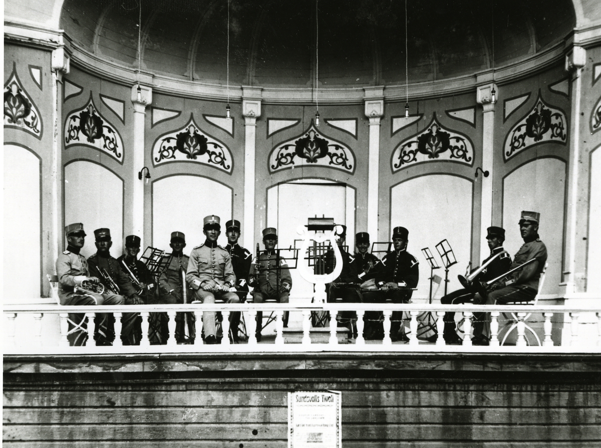 Norrlands dragonregemente, K 8, musikkår spelar i Sundsvalls Folkets park1927.
