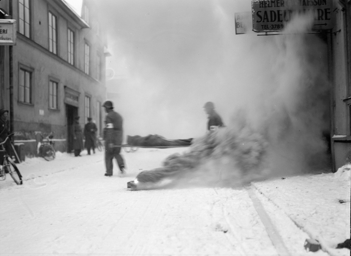 "Luftskyddsövningen utomordentligt realistisk" - "bombeldsvåda vid S:t Persgatan", Uppsala december 1942