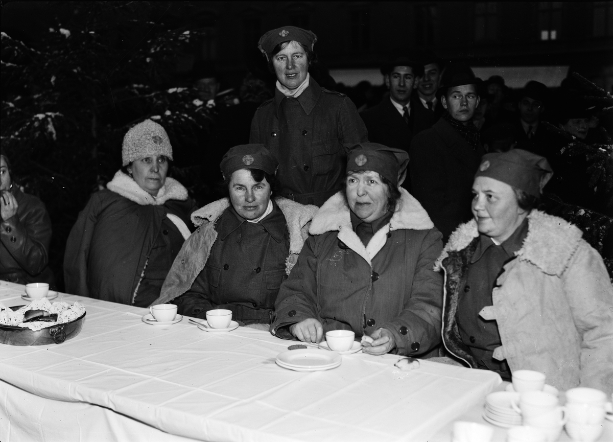 Lottor vid kaffebordet, sannolikt Uppsala, 1936