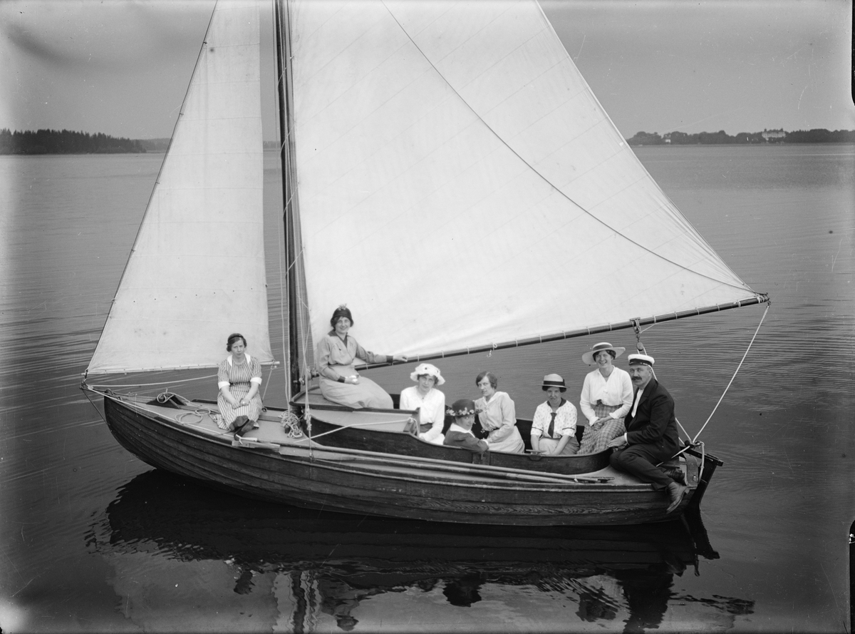 Sällskap i segelbåt, sannolikt på Ekoln, Uppland