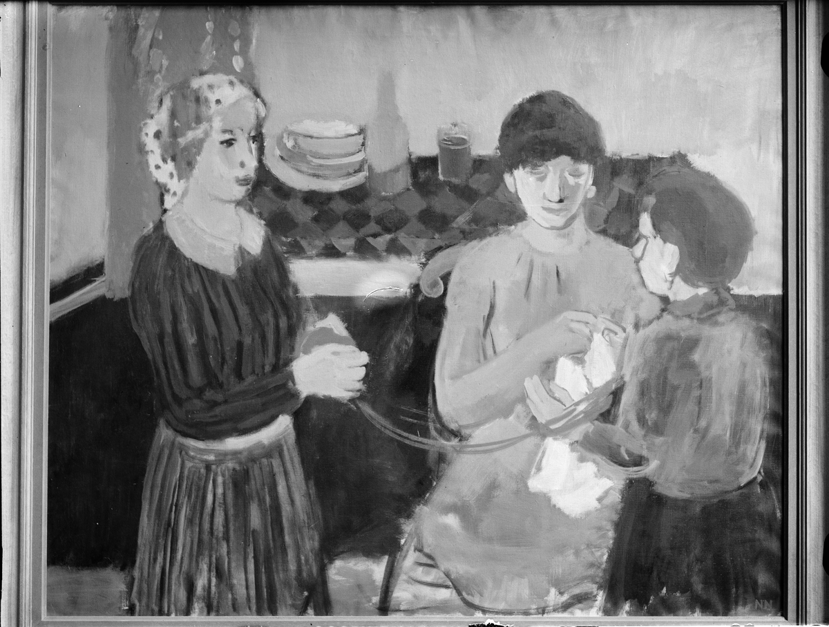"Interiör", oljemålning signerad Nils Nilsson, på konstutställning med Göteborgskolorister anordnad av Upplands Konstförening, Östgöta nation, Trädgårdsgatan 15
