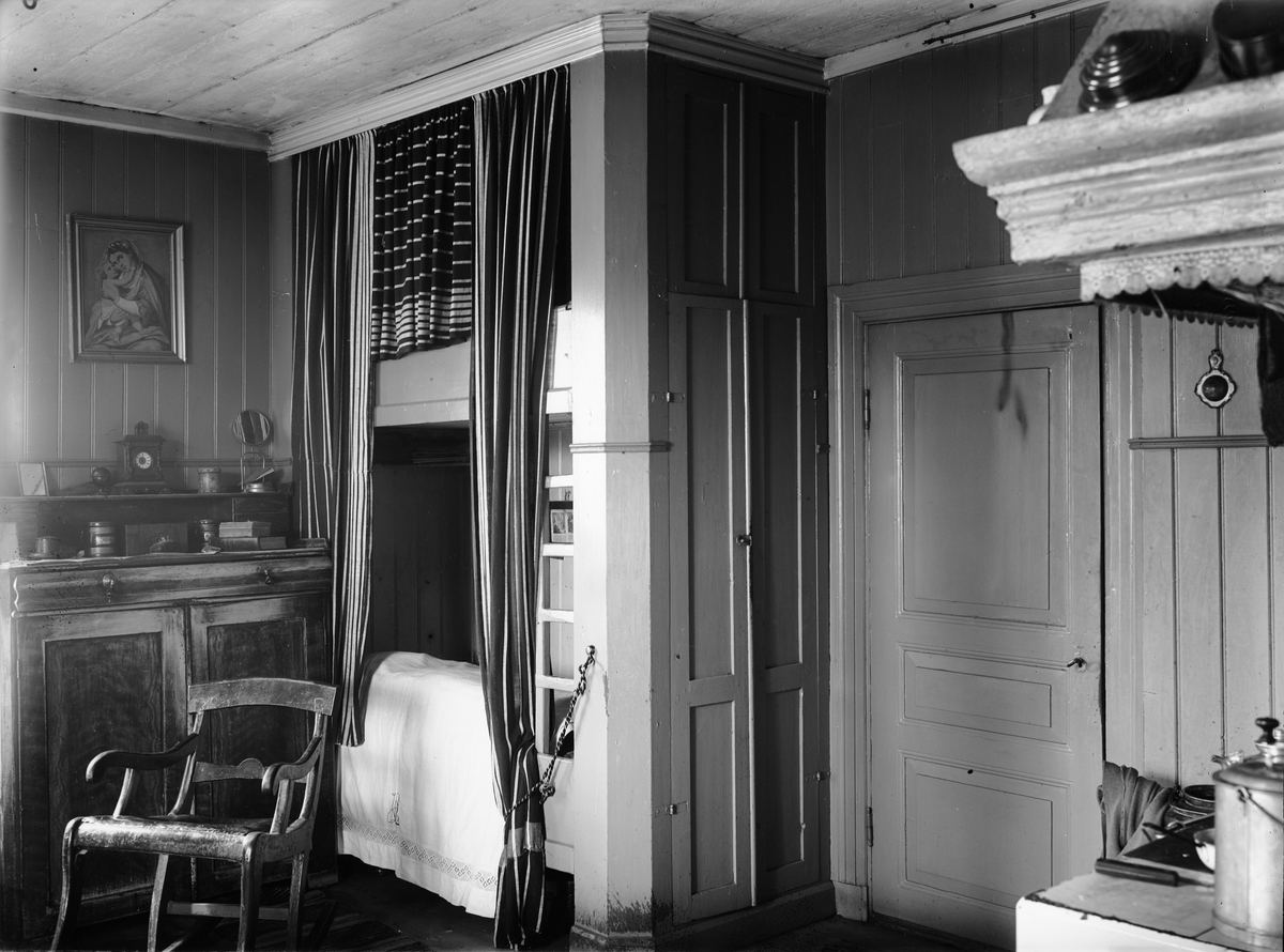 Väggfast säng i dagligstuga - Lindström, Åloppe, Bälinge socken, Uppland 1920-tal