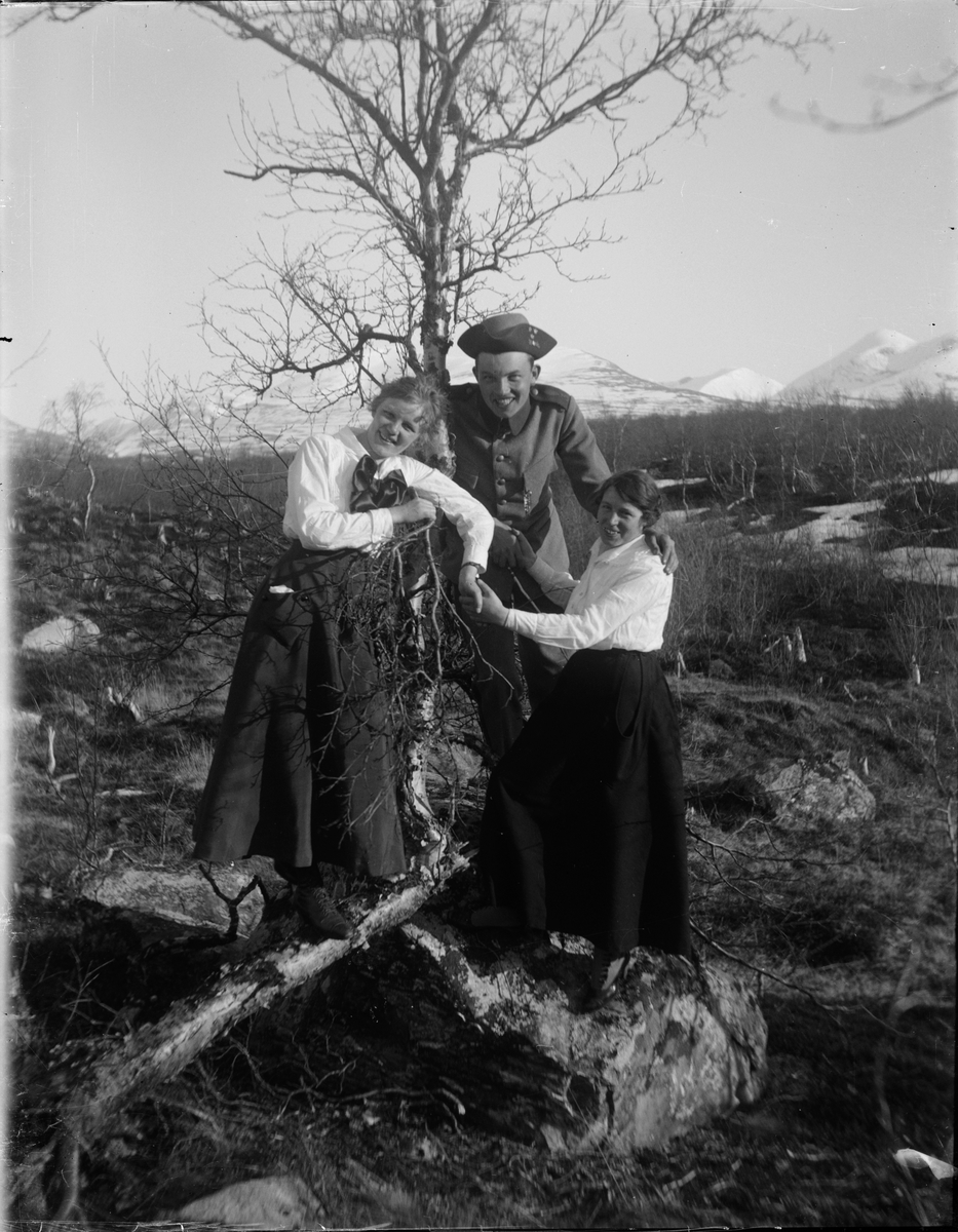 Man i uniform tillsammans med två kvinnor i fjällandskap, Boden