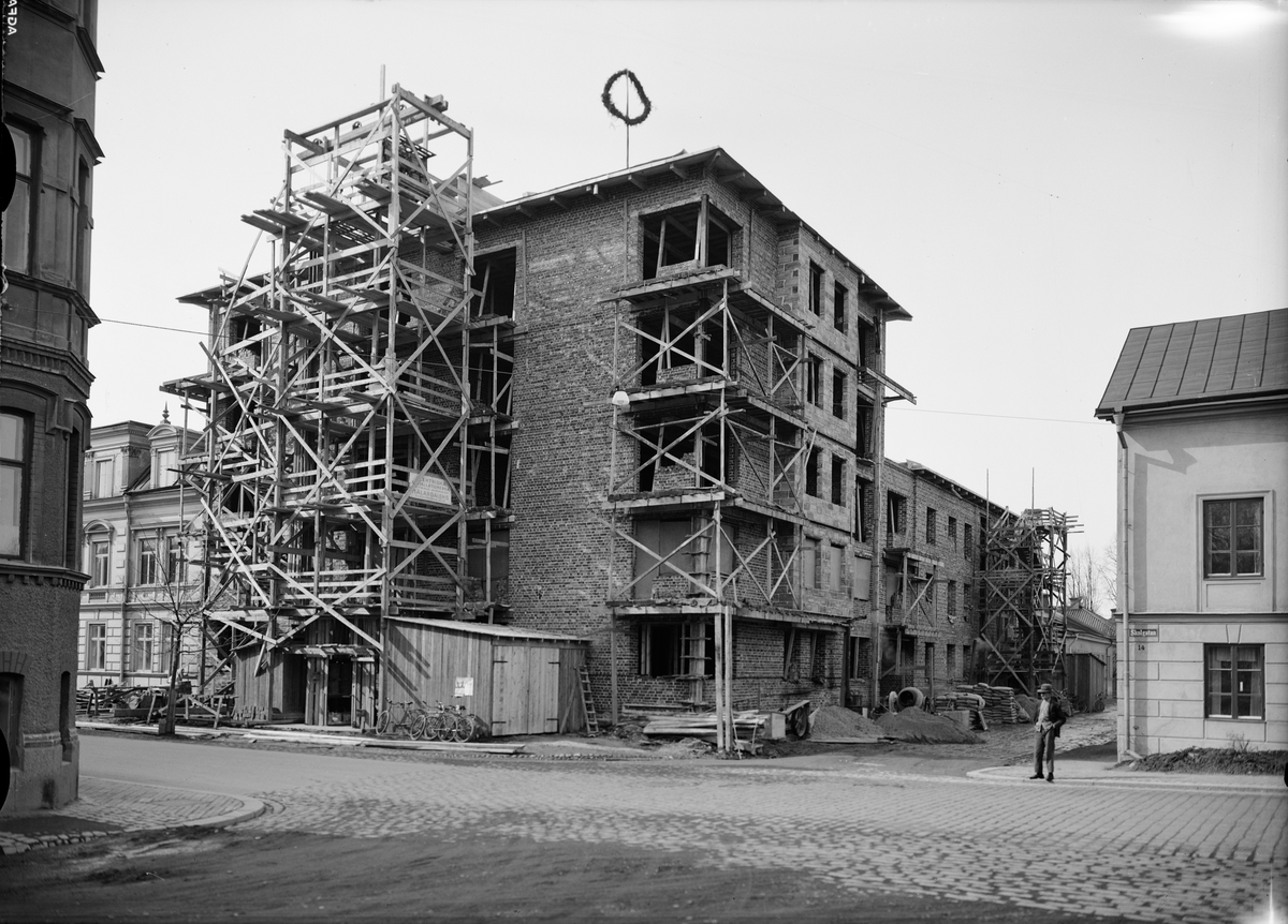 Flerbostadshus under byggnation, Skolgatan 12, kvarteret Sigar, Luthagen, Uppsala 1937