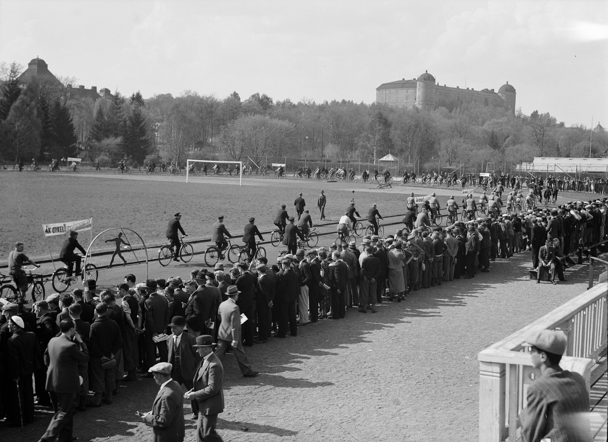 Cykelkortege på Studenternas Idrottsplats vid starten av Svenska cykelveckan