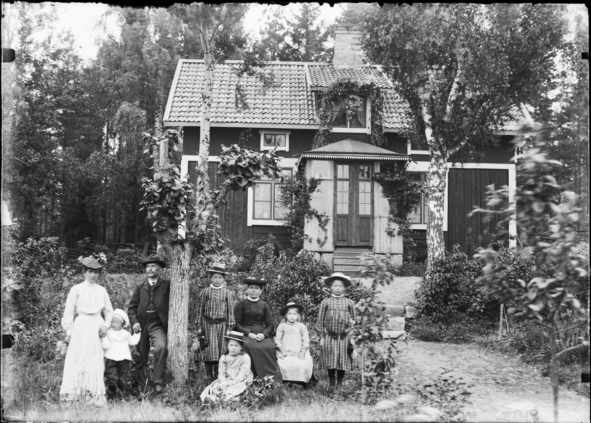 Familj framför bostadshus, Funbo socken, Uppland