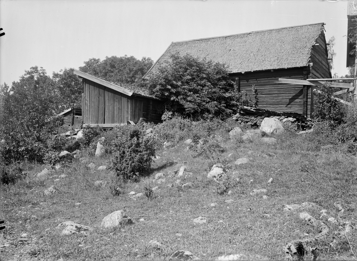 Svinstia och fähus - nu på friluftsmuseet Disagården - på ursprunglig plats, Lilla Bultebo, Tierps socken, Uppland 1930