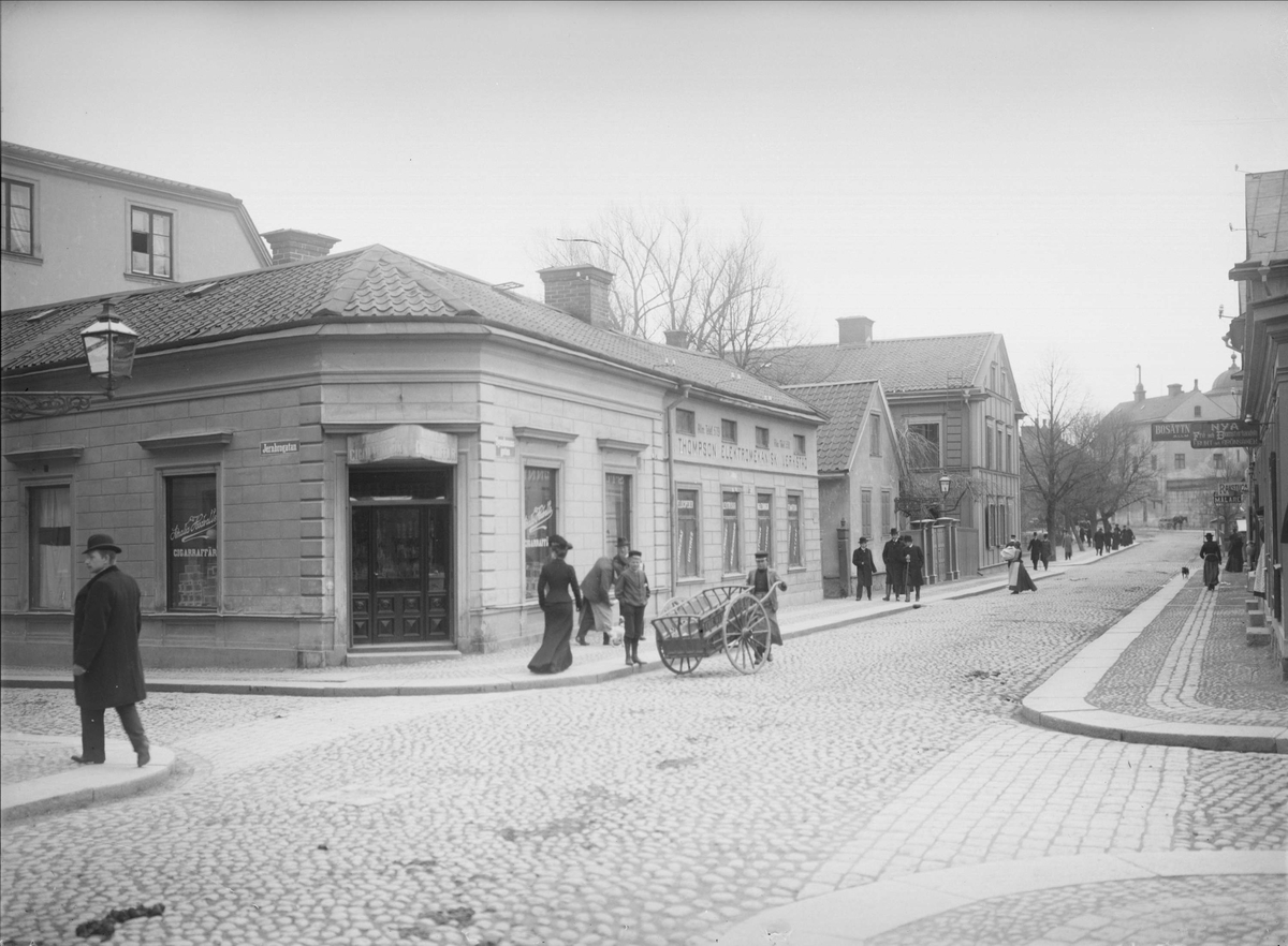 Sysslomansgatan mot sydöst från S:t Olofsgatan, kvarteret Karin, Uppsala 1901 - 1902