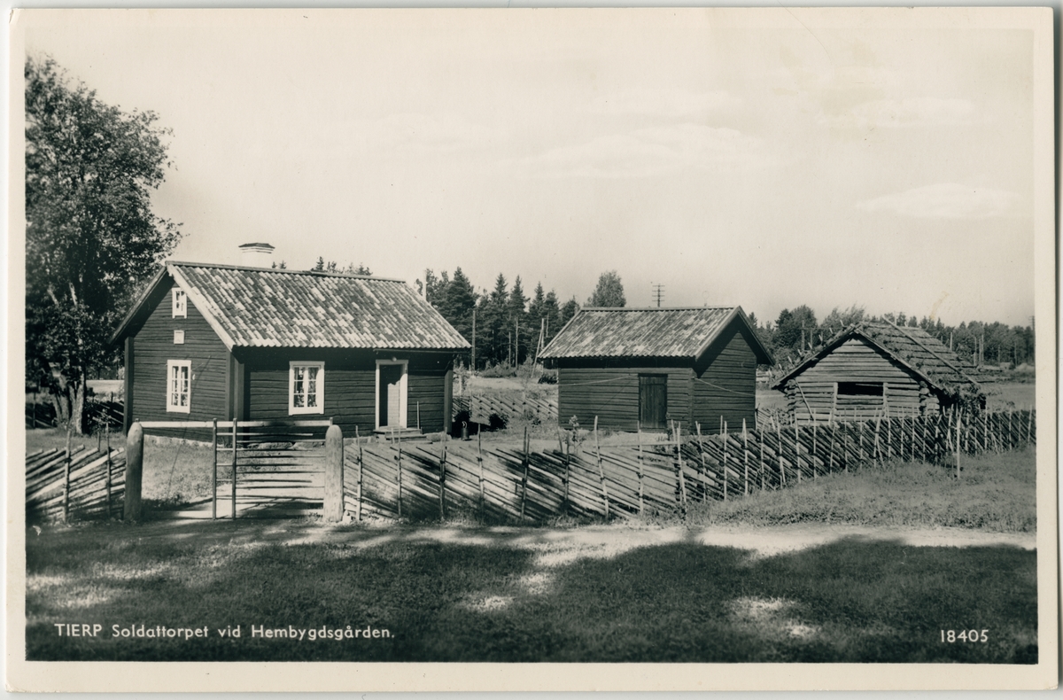 Vykort - soldattorpet vid hembygdsgården, Tierp, Uppland