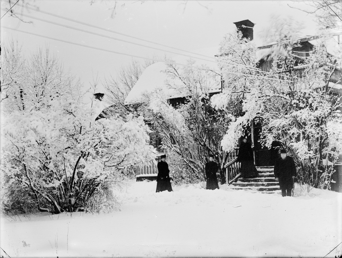 Borgmästare Johan Wahlund med personal i trädgården, Östhammar, Uppland före 1919