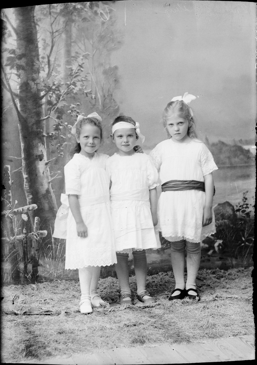 Ateljéporträtt - tre flickor, Östhammar, Uppland 1919