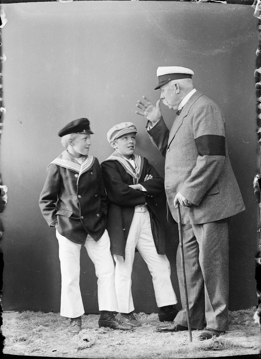 Ateljéporträtt - man och två pojkar, Östhammar, Uppland