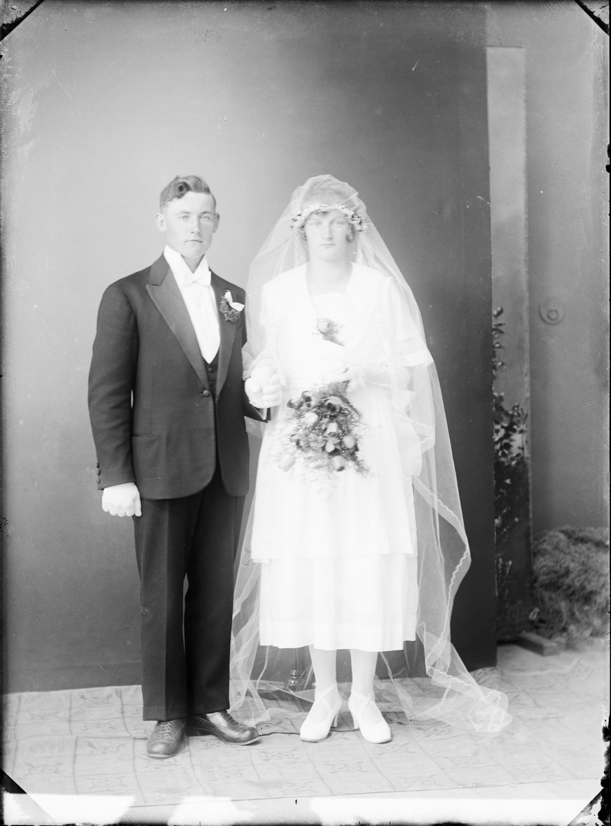 Brudparet Wallin från Lysta, Hökhuvuds socken, Uppland 1922
