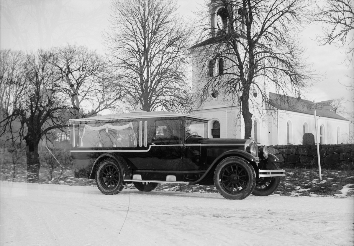 Nilssons begravningsbil vid Börstils kyrka, Uppland