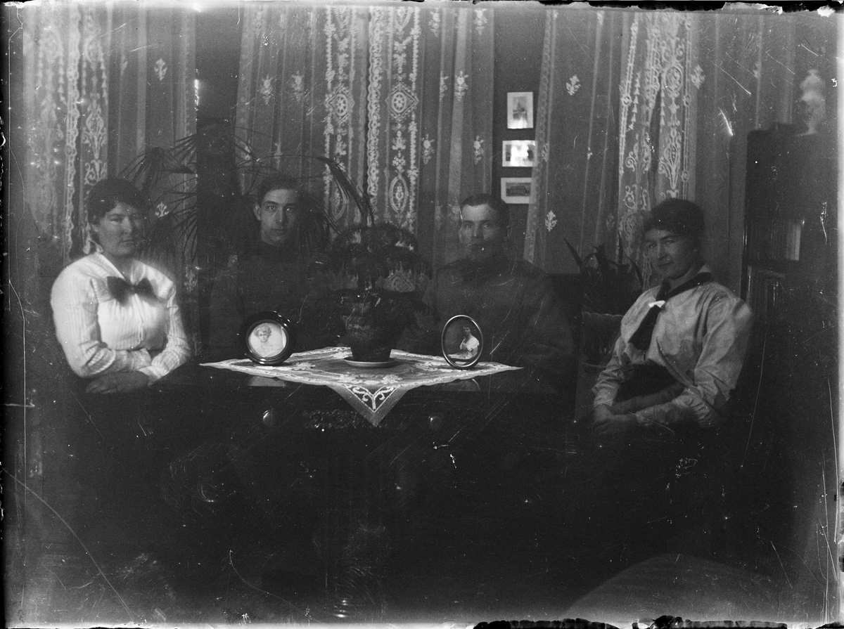 Josef Edhlund och en man i uniform tillsammans med två kvinnor vid ett bord, Östhammar
