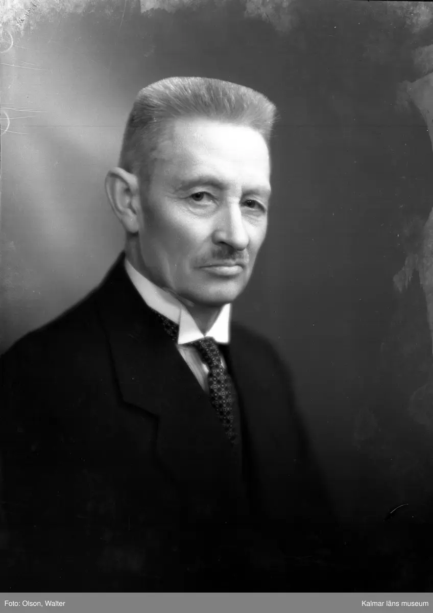 Ateljébild på en man. Enligt Walter Olsons journal är bilden beställd av byggmästare C Nilsson ifrån Sankta Gertruds gata 9 i Kalmar.