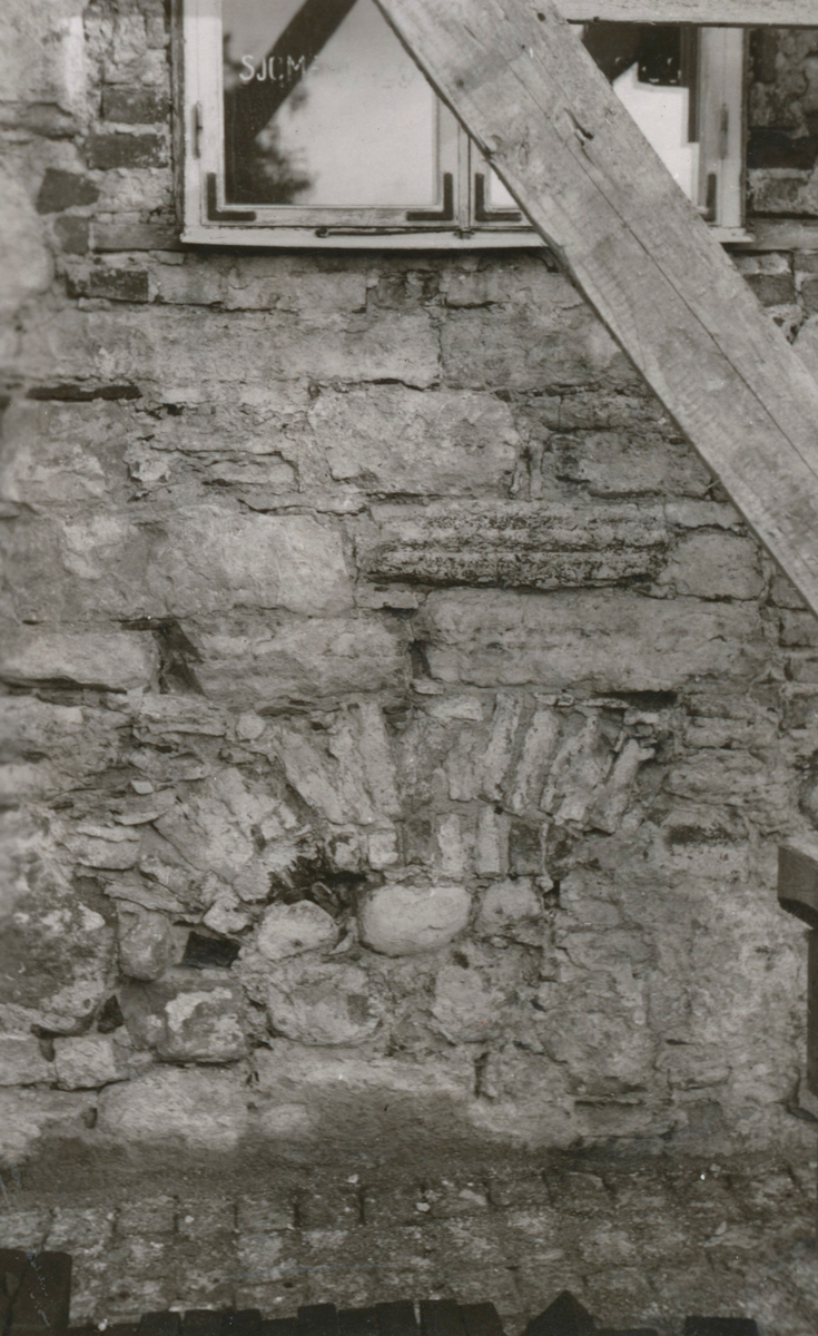 Dahmska huset vid reparationen 1946. Torgfasaden till vänster om porten.