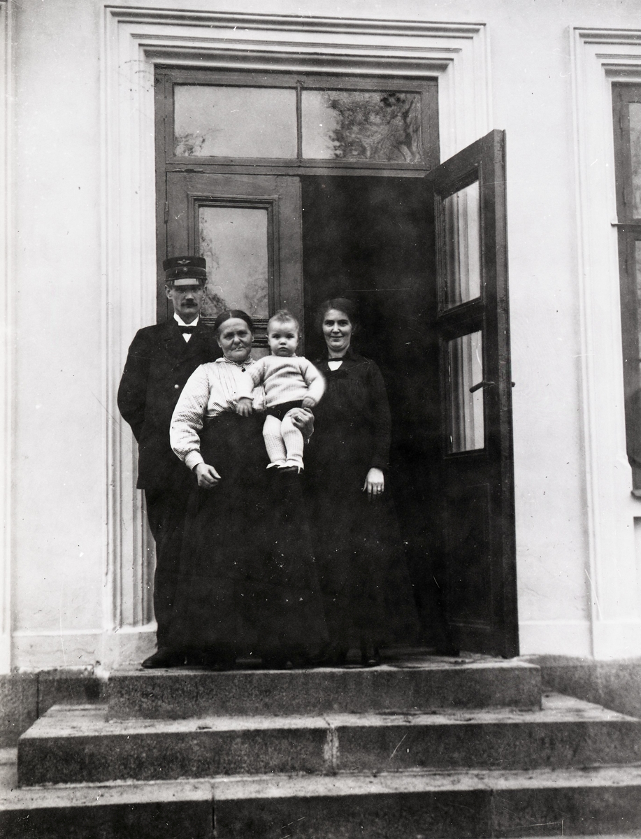 Stationsskrivare Ivar Mansfeld (född 1890-05-31) med hustru Salvina (Salla) (född Karlsson, namnbyte till Berglinder 1910) född 1891-11-21, sonen Bertil (född 1917-11-13) samt Salvinas mor Magdalena Serafia Johansson (född Andersson) från Varberg.