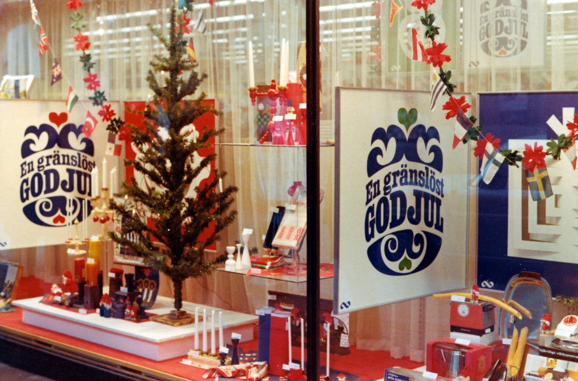 Julskyltning i Domus fönster, i Kalmar 1967.
