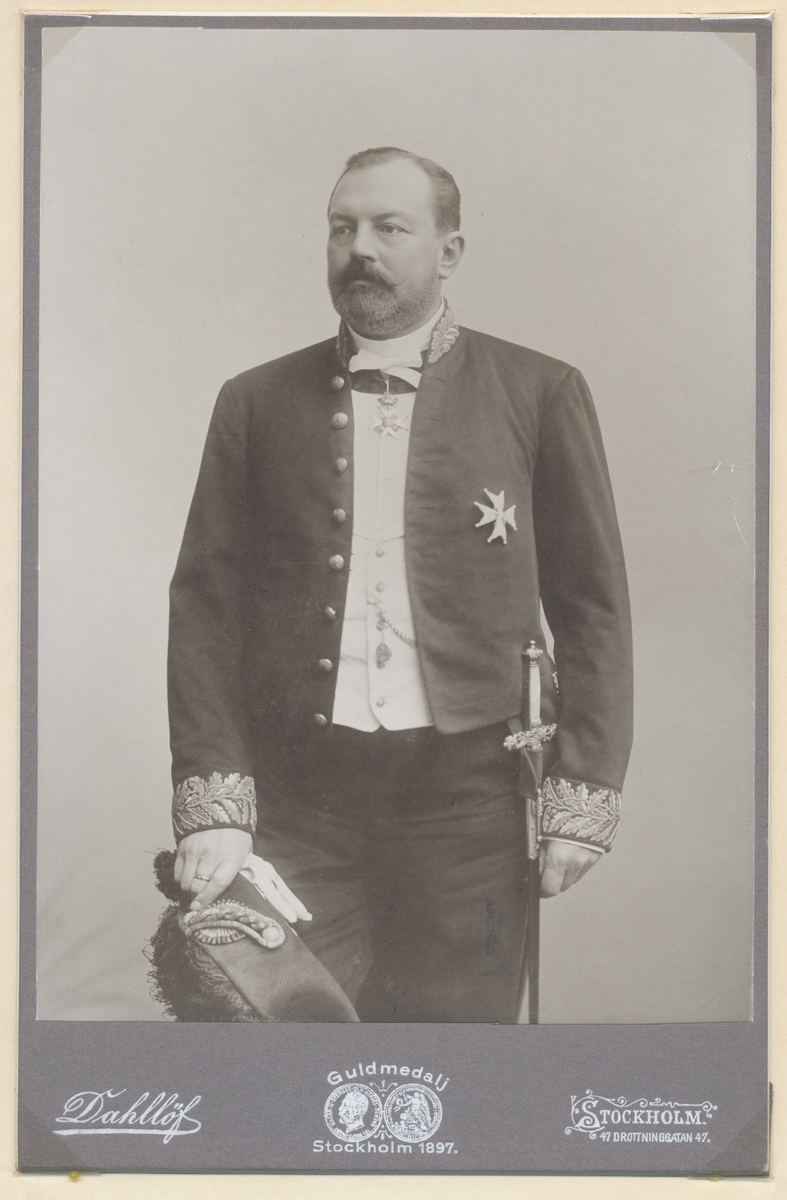 Porträtt av Carl Adolf Fagerlund, landshövding, med uniform och sabel.